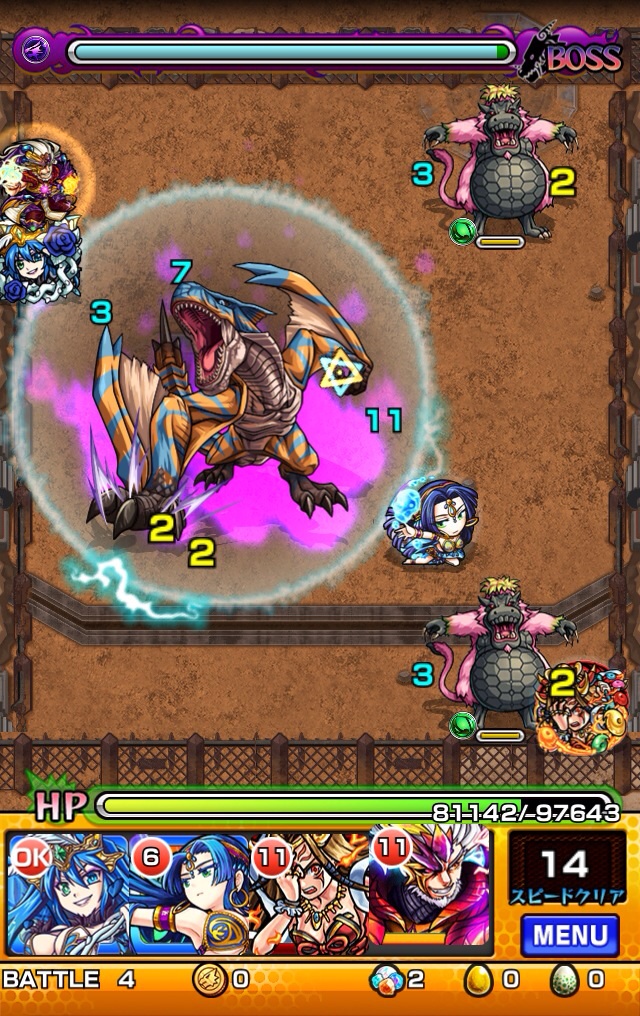 ボスの攻撃頻度が高くて結構厄介なので、手早く倒すためにもAGBモンスターで挑みましょう。