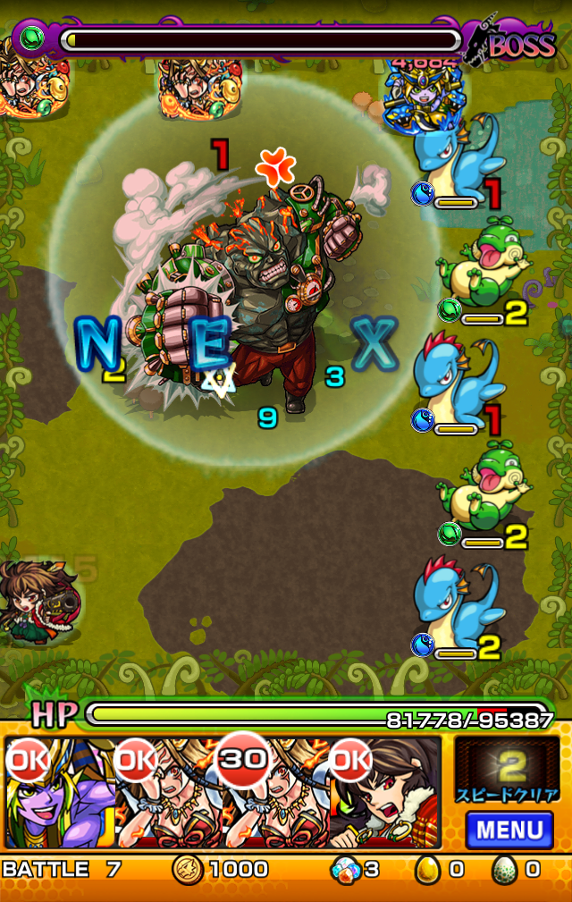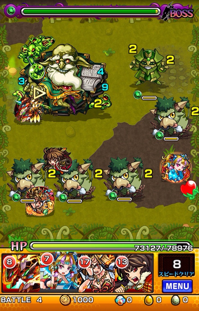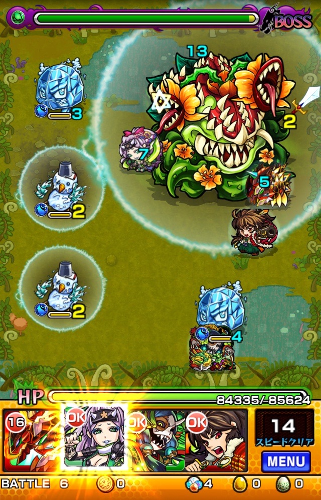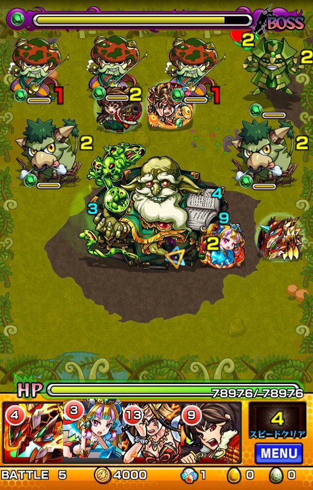水属性の敵も多く出るので木属性を連れて行くとスピードクリアを狙いやすいです。