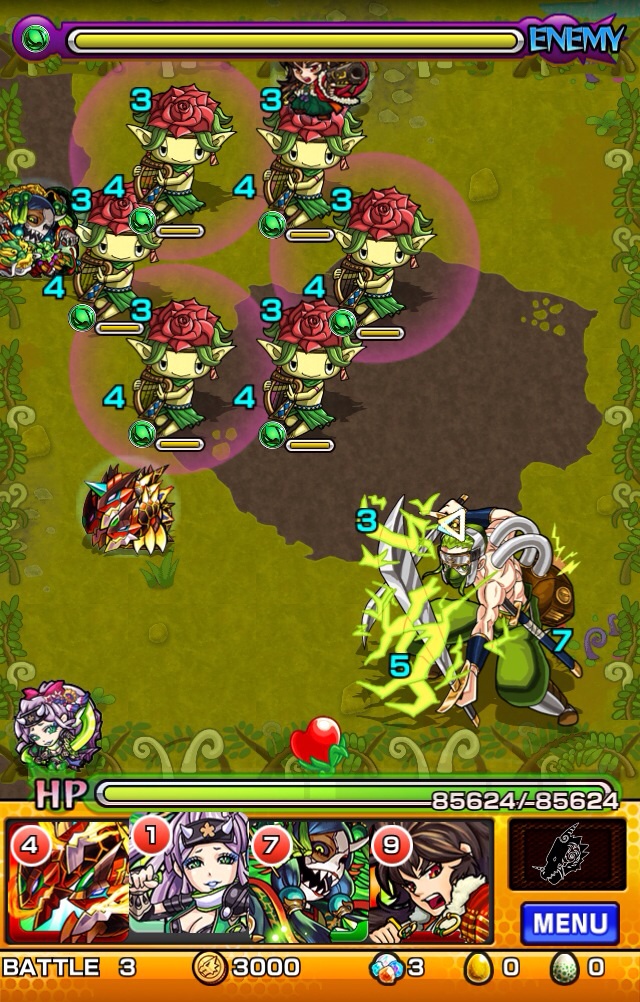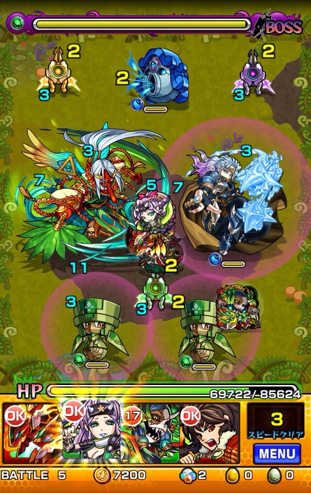 2戦目は雑魚モンスターが多いので、号令SSなどを最初に使うと良いです。