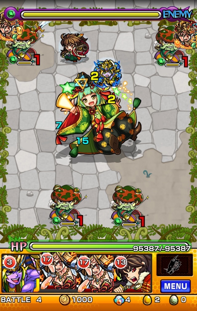 両角右下と左上にいるゾンビのような敵モンスターが、毎ターン、全ての雑魚敵を復活させます。