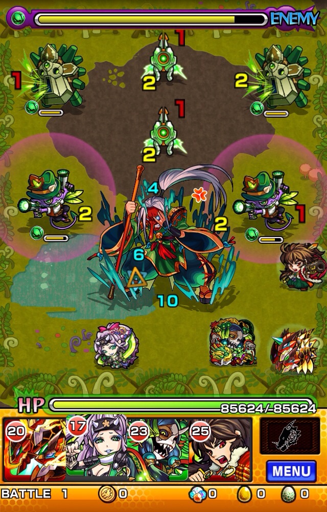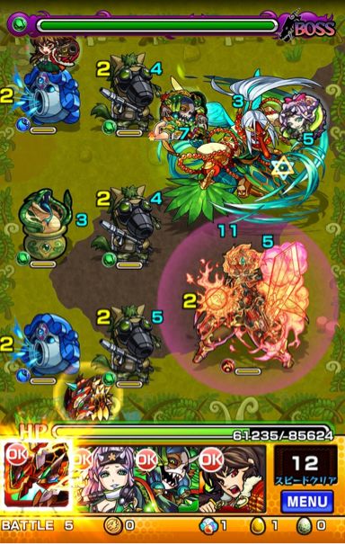 2戦目は雑魚モンスターが多いので、号令SSなどを最初に使うと良いです。