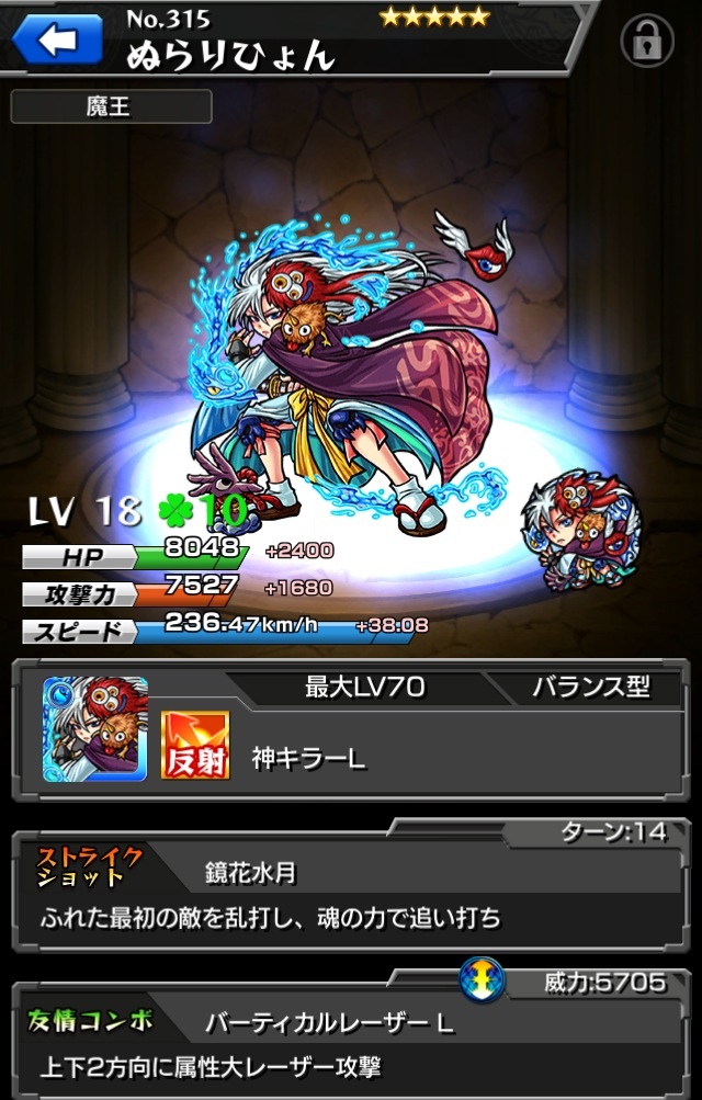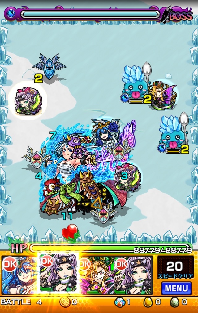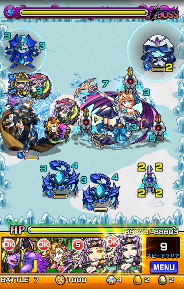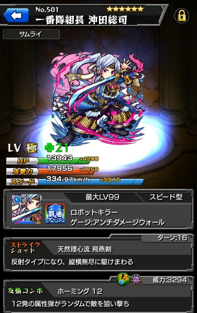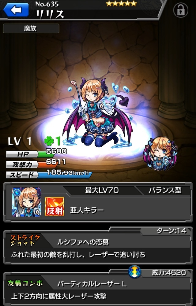 魔族キラーでボスに大ダメージ。乱打SSがスピードクリアターン内に2回使える点も優秀。ADWは無いので注意。