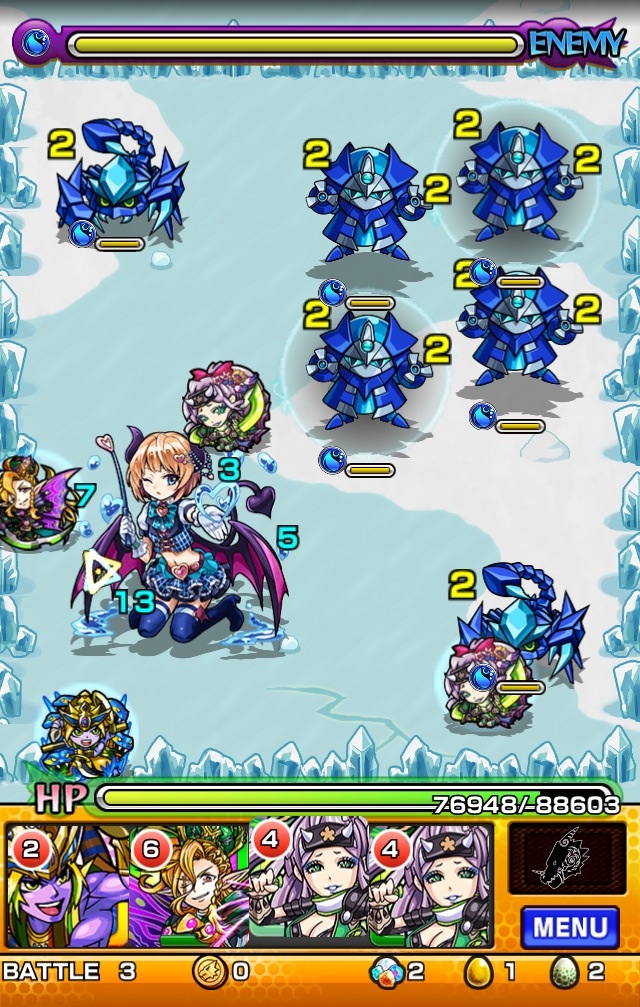 サソリ集団にロボ集団。サソリはどんな攻撃も1しか当たらないので後回し。まずはロボを倒しましょう。