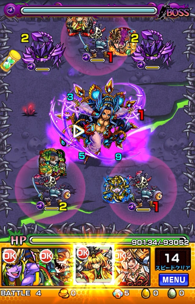 スピードクリアターンが短くボスの体力は低めですが、サソリがいるのでスピードクリア自体は超困難。