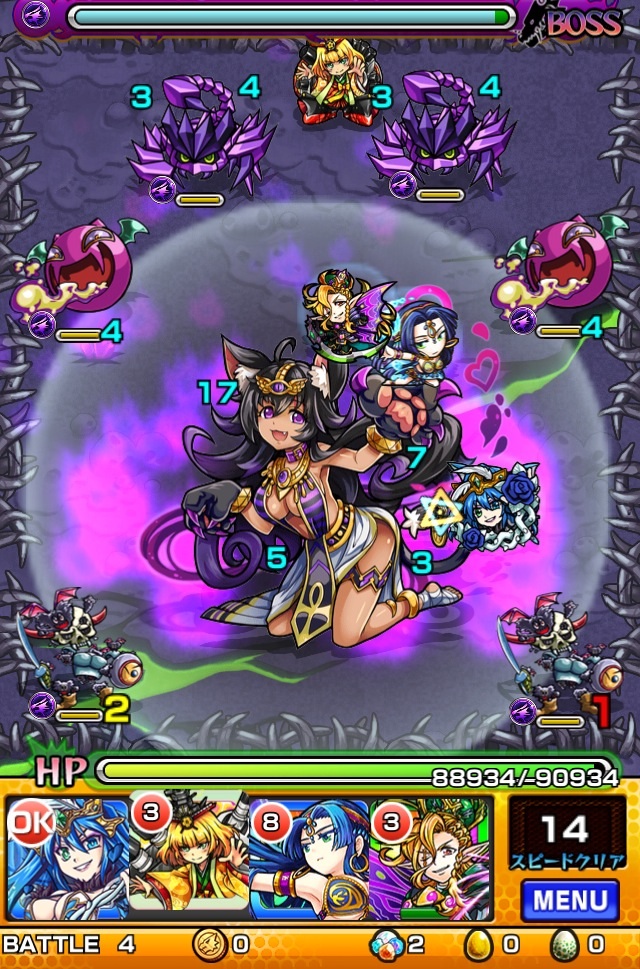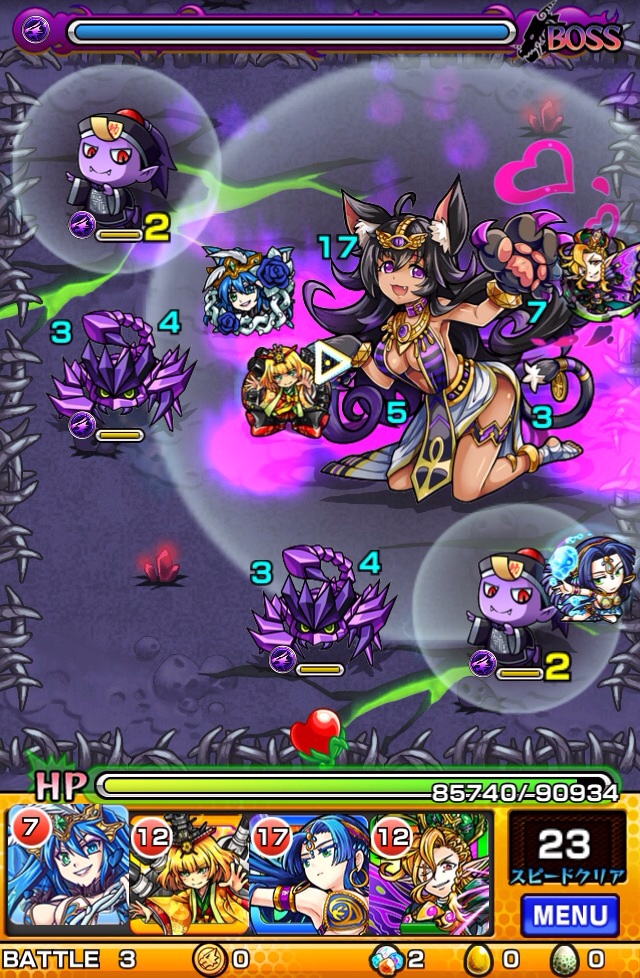 神キラー持ち2体、AGB2体で挑むとすんなりクリアしやすい。どちらかにホーミング持ちがいるとサソリの対処も早くなる。